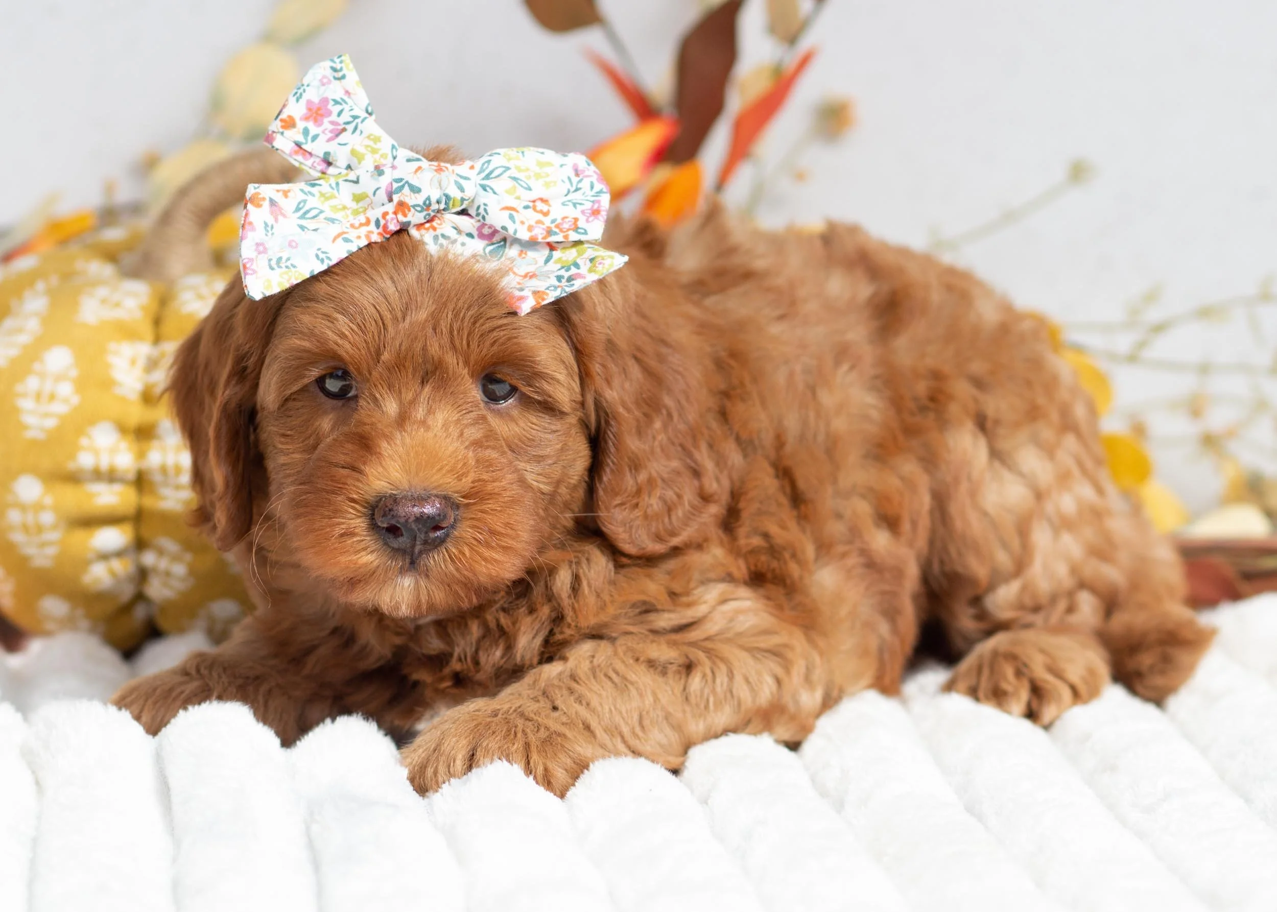 Above are Maple’s parents. Her mother Chloe (Genetic Tested) is a F1b Goldendoodle that weighs 29 pounds. Her father Gordon (Genetic Tested) is a F1b Goldendoodle weighing 10 pounds.