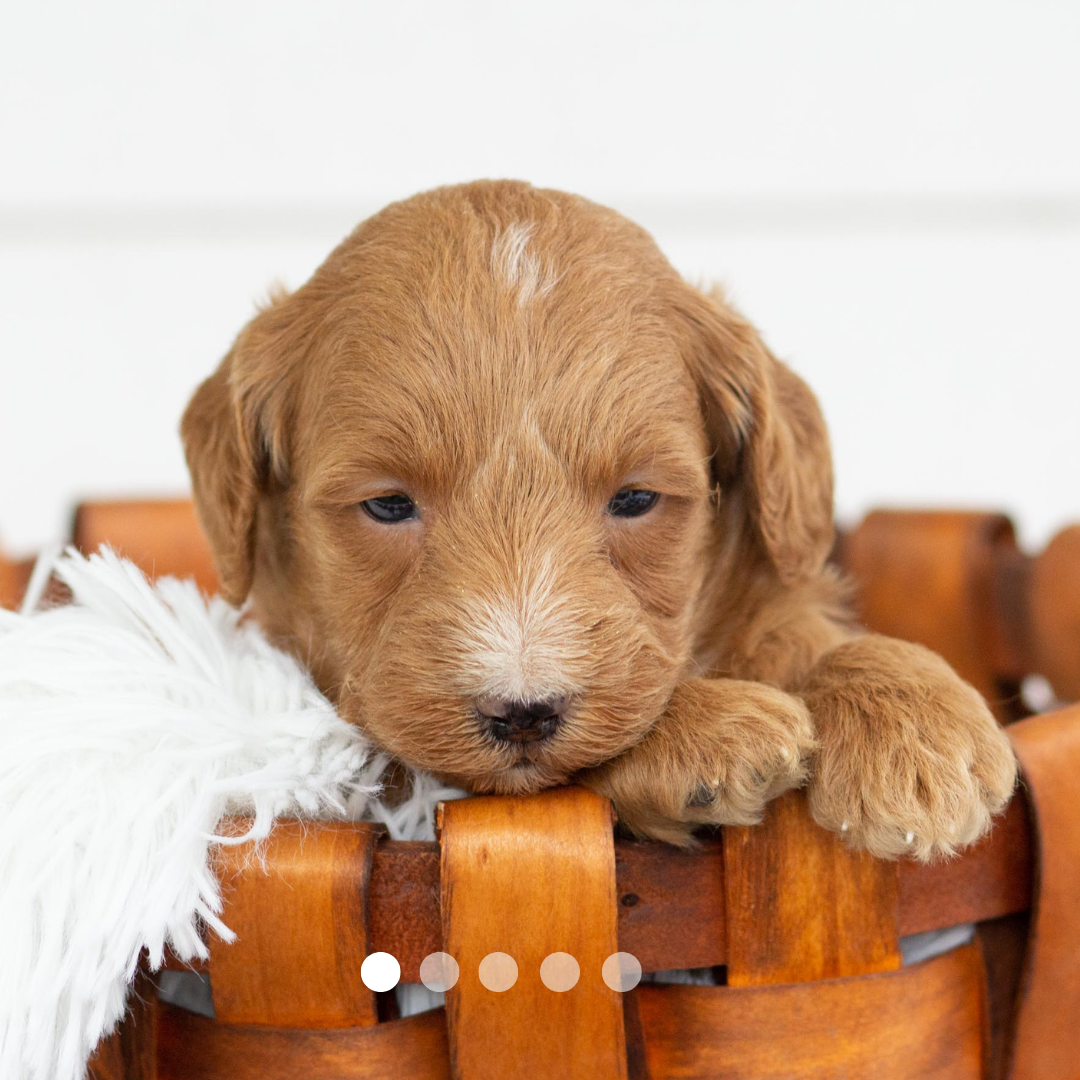 Above are Cocoa’s parents. Her mother Carla (Genetic Tested) is a F1 Goldendoodle that weighs 25 pounds. Her father Luke (Genetic Tested) is an AKC Poodle weighing 20 pounds.