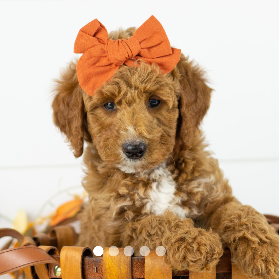 Above are Honeycrisp’s parents. Her mother Luna (Genetic Tested) is a F1b Goldendoodle that weighs 28 pounds. Her father Luke (Genetic Tested) is an AKC Poodle weighing 20 pounds.