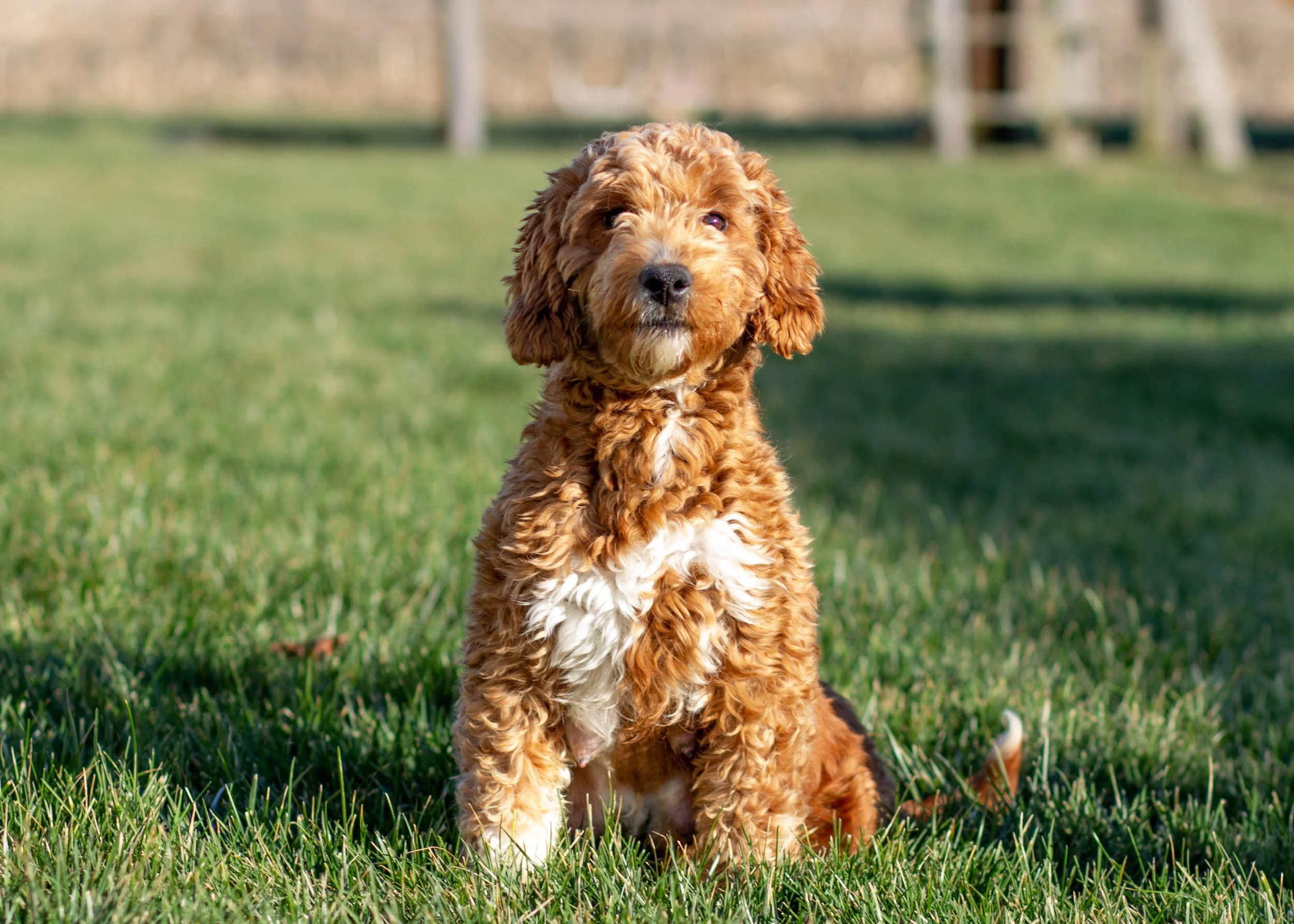 Above are Marley’s parents. Her mother Maya (Genetic Tested) is a F1 Goldendoodle that weighs 25 pounds. Her father Chase (Genetic Tested) is a Poodle weighing 17 pounds.